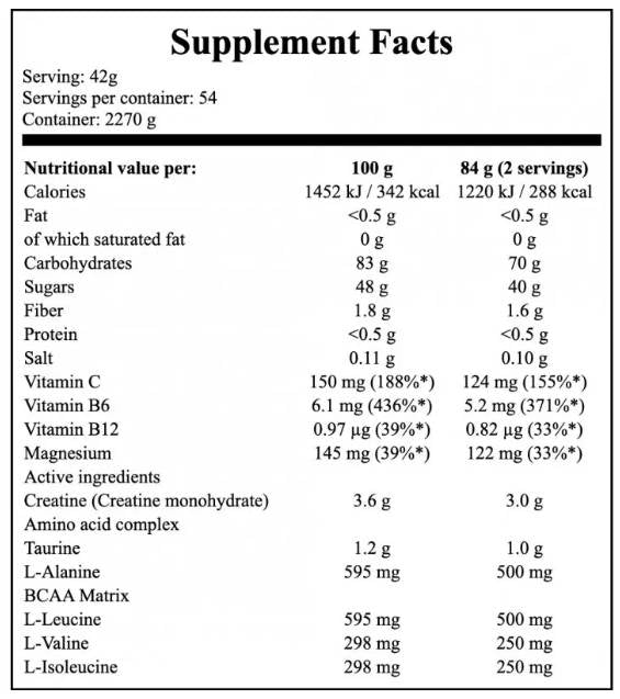• Съдържа BCAA & Taurine за подкрепа на мускулите и нервната система