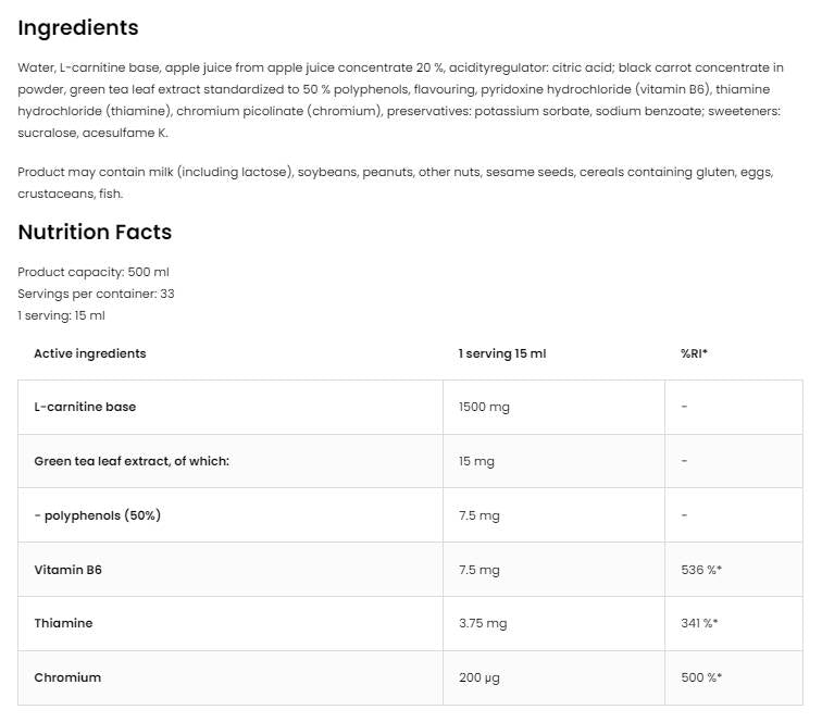 L-Carnitine Liquid | + Green Tea and Chromium 500 мл