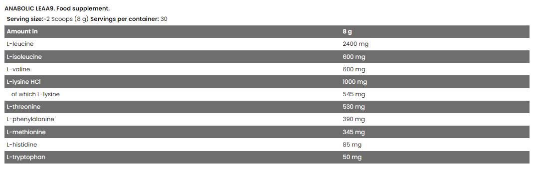 Xtreme Napalm LEAA 9 е аминокиселинен комплекс с повишено съдържание на L-левцин – основен компонент в контекста на процеса на протеинов синтез. Левцинът е отговорен за активиране на mTOR киназата, която предизвиква реакции, допринасящи за производството на нови мускулни протеини. Други EAA аминокиселини засилват този процес, което може да доведе до повишаване на ефективността на развитието на мускулна маса. Това е изключително важно за физически активните хора, които са фокусирани върху оформянето на атлетична физика.