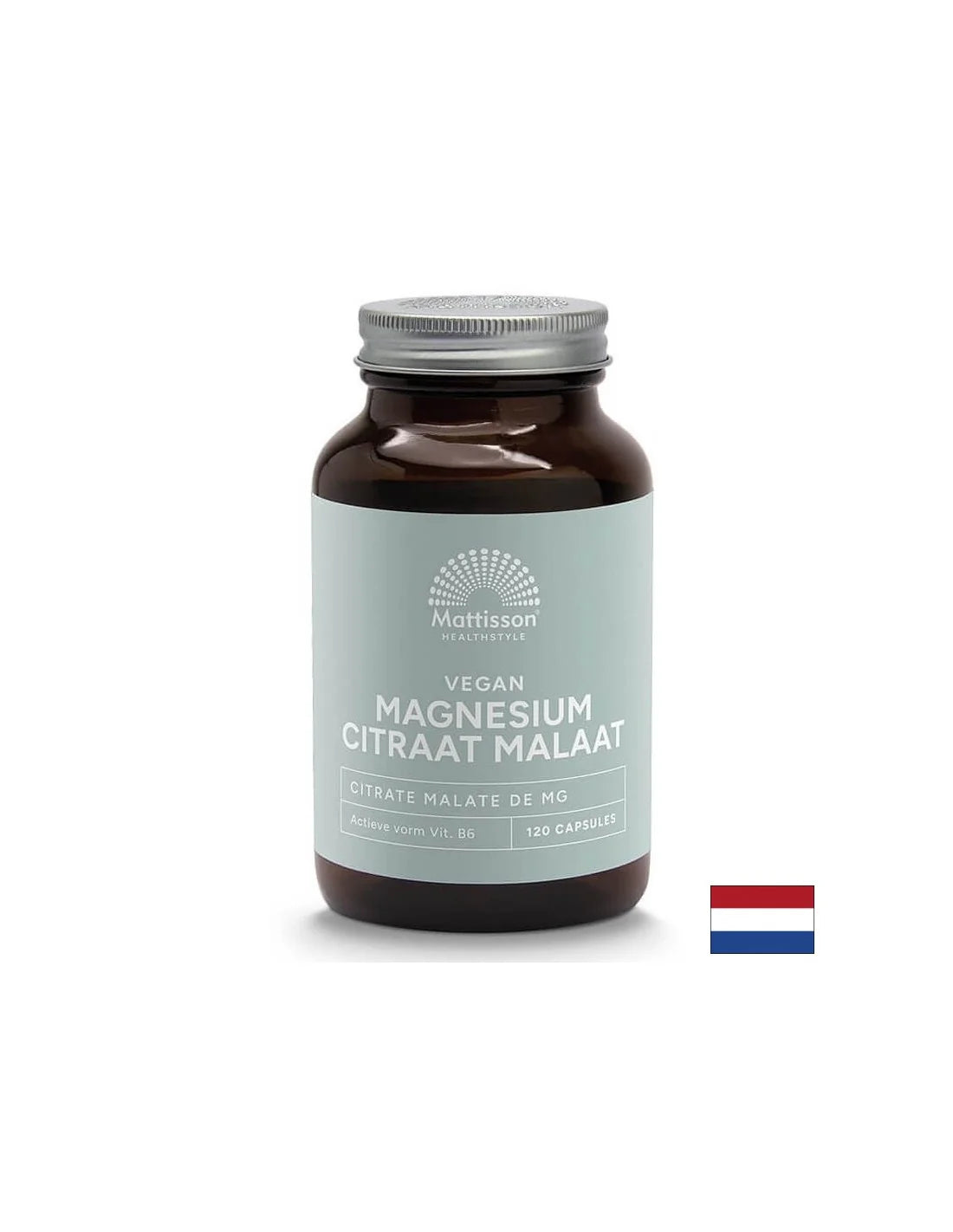 Магнезиевият цитрат малат играе роля в поддържането на мускулите силни, като активира естествената енергия в тялото. Тези капсули съдържат 13% елементарен магнезий, който е необходим за много процеси в тялото. Допринася за нормалната мускулна функция, съдейства при предаването на нервните импулси и участва в паметта и концентрацията. Богати източници на магнезий са какаото, зелените листни зеленчуци, ядките, фурмите, сливите и авокадото. Въпреки това, дефицитът на магнезий е все по-често срещан в наши дни. Един от основните виновници за това е стресът, по време на който тялото използва голямо количество магнезий. Някои лекарства също понижават магнезиевия статус. Оплакванията, свързани с дефицит на магнезий, са ктампи, умора, запек, тревожност и безпокойство. Цитратно-малатния комплекс увеличава усвояването на магнезий. За по-голяма ефикасност върху работата на нервната система, капсулите съдържат и витамин В6.