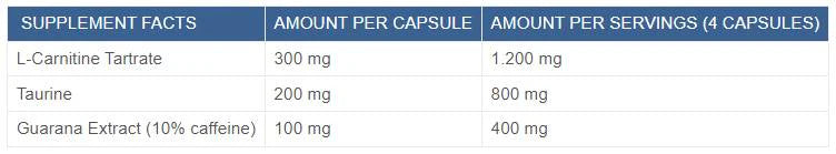L-Carnitine + Guarana + Taurine - 90 капсули
