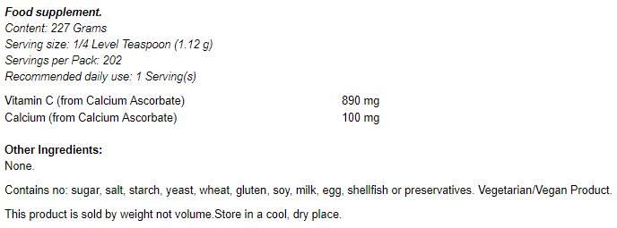 Калциев аскорбат - чист буферен прах 227 грама