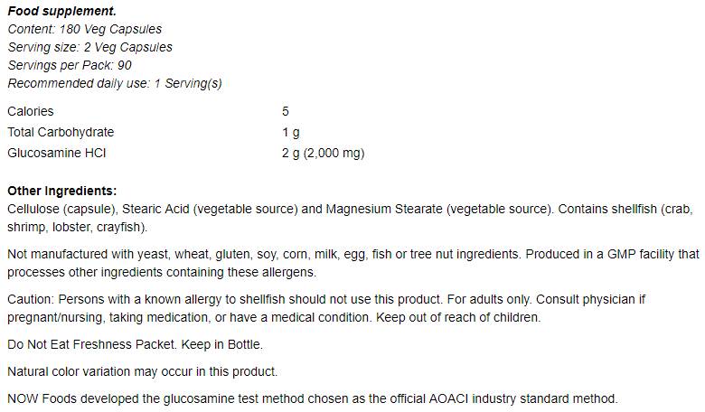 Препоръчително е глюкозамин да се набавя чрез храната (морски храни) и под формата на добавка към храната.