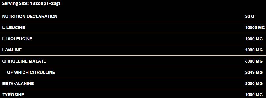 Тази добавка не само подобрява възстановяването, но и подпомага анаболния процес, благодарение на специално подбраните съставки. Миксът от Цитрулин и Бета-Аланин осигурява по-добро изпомпване и повишена производителност по време на тренировка. Тирозинът, от своя страна, играе важна роля в регулирането на енергийните нива и концентрацията.
