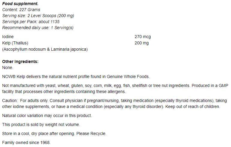Важно: Преди употреба на продукта, консултирайте се с медицинско лице, особено ако имате здравословни проблеми или приемате лекарства. Продуктът е противопоказан за хора с хипертиреоидизъм или свръхчувствителност към морски дарове.