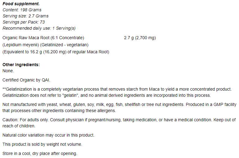 MACA 6:1 Concentrate Pure Powder - 198 грама