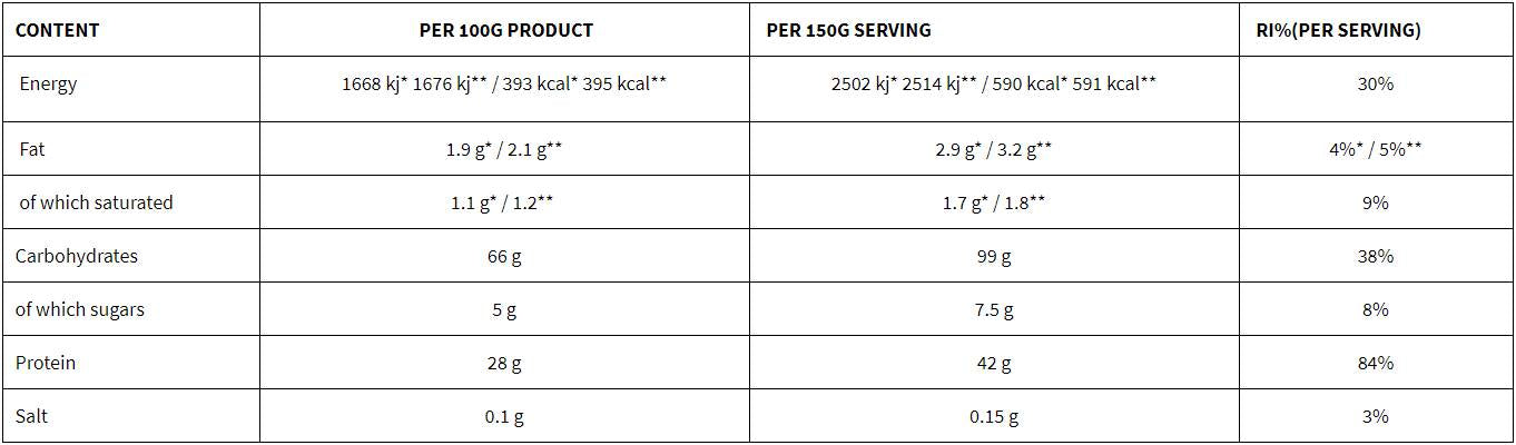 1. Съставът и информацията за алергени могат да се променят от производителя без предварително известие. За най-актуална и точна информация използвайте етикета/опаковката на продукта.