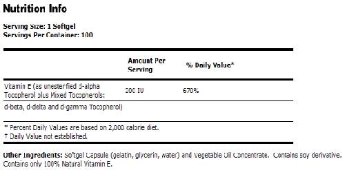 Vitamin E-200 IU D-Alpha Tocopherols - 100 Гел капсули