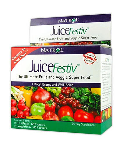 Сега вече е лесно да си набавите много от положителните ефекти от плодовете и зеленчуците в Natrol® JuiceFestiv®. е една мощна антиоксидантна добавка, с органична смесица от супер плодови акаи, помегранат, мангостийн и нони. Съдържащ основни витамини и добавки, той гарантира пълния спектър от естествено възникващи цветове на разнообразни плодове, които ви набавят много от благоприятните свойства, заложени в природата!