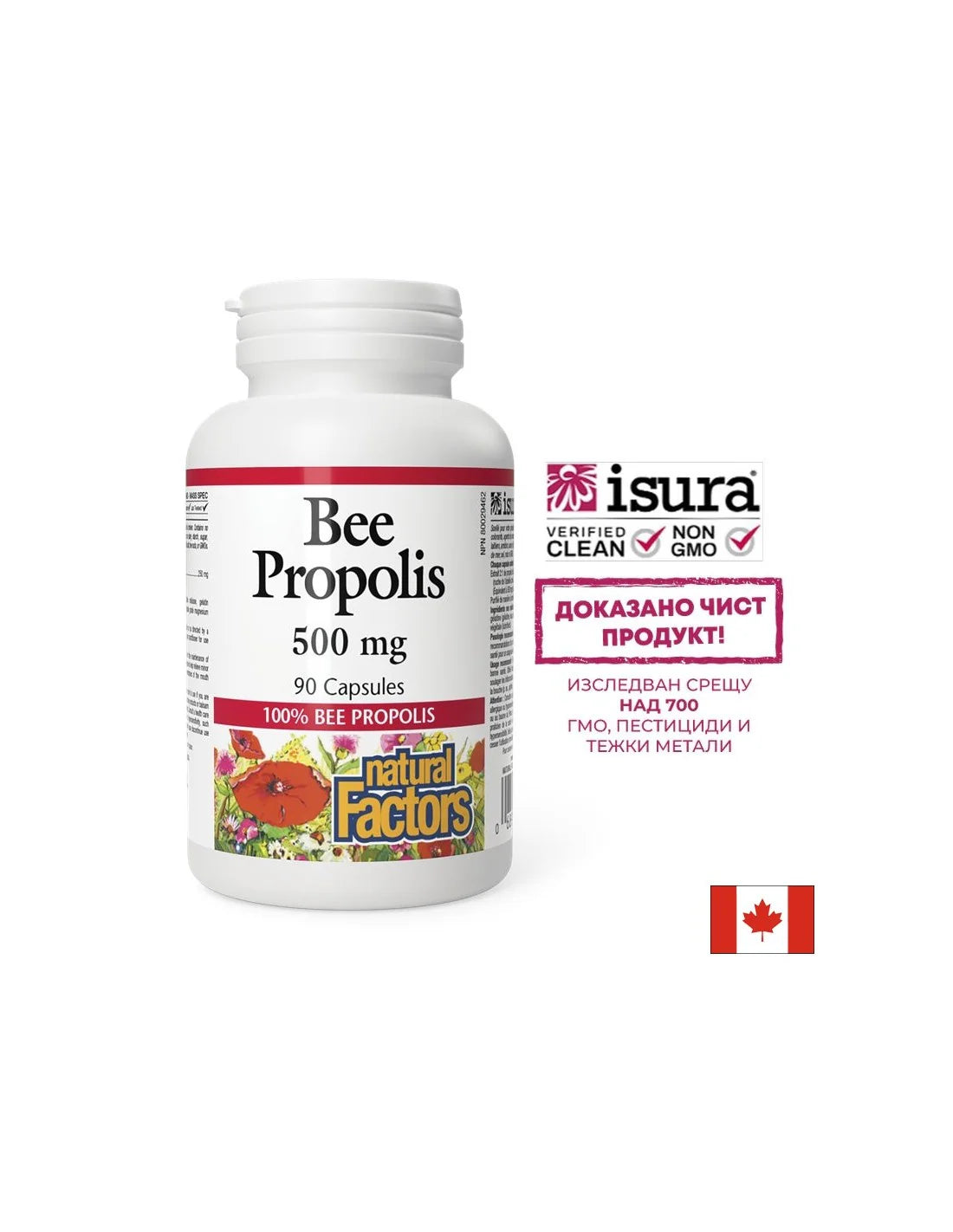 Прополисът на Natural Factors притежава мощни противовирусни, антибактериални, антитоксични и болкоуспокояващи свойства. Бионаличните активни вещества засилват имунната защита, увеличават броя на червените кръвни клетки и оказват контрол над нивата на холестерола.