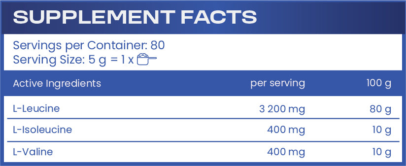 Във формулата BCAA 8:1:1 има 8 пъти повече левцин от колкото изолевцин и валин. Това не е случайно, нито пък е маркетингов трик. Левцинът се счита за най-анаболната аминокиселина в човешкото тяло, която спомага за по-бързото и качествено покачване на мускулна маса. Левцинът има уникалната роля да бъде сигнална молекула, която регулира оптималния протеинов синтез в скелетната мускулатура. В допълнение, Левцинът помага за поддържането на добър метаболизъм на глюкозата и инсулиновата функция в норми. Също така, той улеснява процеса по използване на мазнините като източник на енергия.