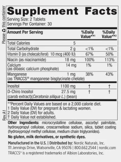 Съставът включва витамини като D3 и ниацин, минерали като калций и манган, както и два вида инозитол, известни със своето положително въздействие върху репродуктивното здраве. Продуктът използва биоусвоими форми и хелатни минерали за по-добра абсорбция, като е подложен на трето лице тестване за гарантиране на чистота и свежест. Не съдържа ГМО, глутен или млечни продукти и не съдържа изкуствени оцветители или аромати. Етичната иновация на Nordic Naturals гарантира безопасни и ефективни хранителни вещества за оптимално благосъстояние.