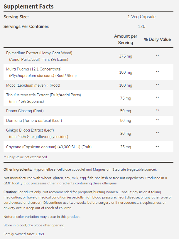 Mens Virility Power съдържа още и екстракти от Horny Goat Weed и Damiana