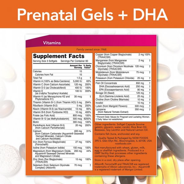 Витамини за бременни (Prenatal Vitamins) осигуряват и гарантира добро здраве за майката и плода. Продуктът е със завишено съдържание на калций, което предпазва костите и зъбите на майката. Този минерал е важен за предотвратяването на преждевременното раждане. Фолиевата киселина е нужна и е най-ефективният начин да се предпази плода от малформации като дефекти на невралната тръба. Участвайки в процеса на деление на клетките, този витамин обезпечава необходимата скорост на растежа и развитието на плода. Въпреки че фолиевата киселина се среща в много продукти като броколите, спанака, соята, плодовете, този витамин се назначава допълнително.