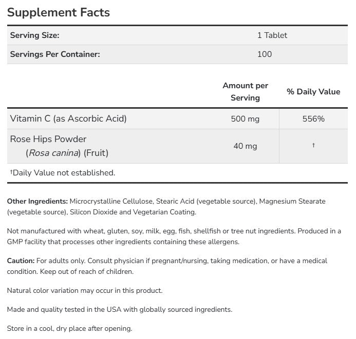 Vitamin C-500 with Rose Hips / 250 Tabs