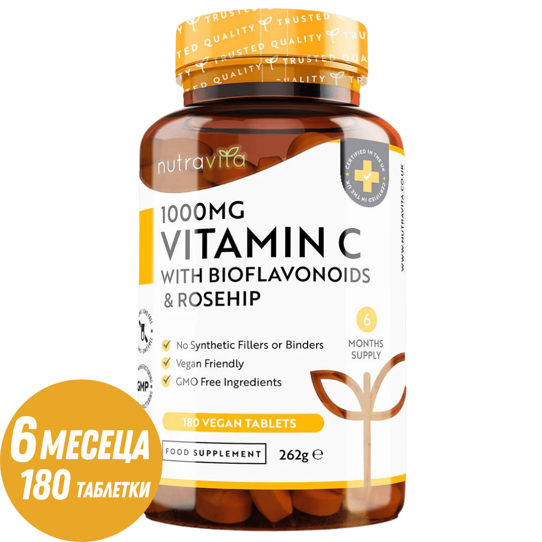 Витамин C 1000 мг с Биофлавоноиди и Шипка 180 таблетки Nutravita