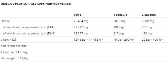 Омега-3 есенциалните мастни киселини подобряват мозъчната активност, поддържат функцията на сърцето и подобряват зрението. Този продукт е подобрен и с витамин D, който допринася за нормалната функция на имунната система.