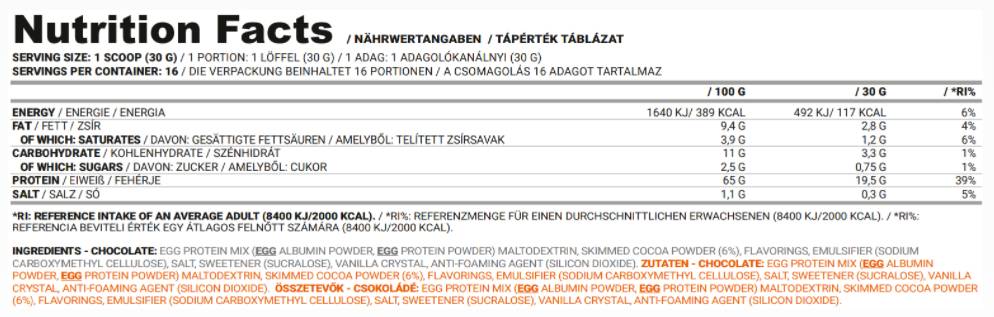 Яйчният протеин е не само много висококачествен протеин, но тъй като продуктът е изцяло без мляко, той също така не съдържа лактоза и казеин и e без глутен.