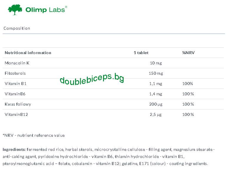 Монаколин К от ферментирал червен ориз, както и билкови стероли , които спомагат за поддържането на нормални нива на холестерола в кръвта.