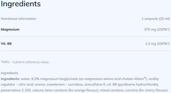 Магнезият участва в над 300 ензимни реакции, подпомага транспорта на вещества през клетъчните мембрани и баланса между натрия и калия. Той е необходим за правилните мускулни контракции и за производството на енергия (ATP), което прави Chela-Mag B6 Forte особено полезен за спортисти и активен начин на живот. Една доза осигурява висока концентрация магнезий, подсилена с витамин B6 за по-добра абсорбция и ефект. Удобните ампули позволяват употреба преди, по време или след тренировка, както и за ежедневна поддръжка.