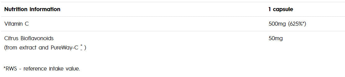 • Витамин C под формата на естер за по-висока биологична стойност и продължително действие.