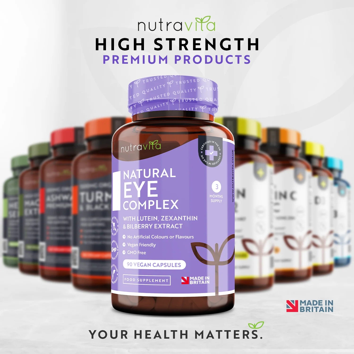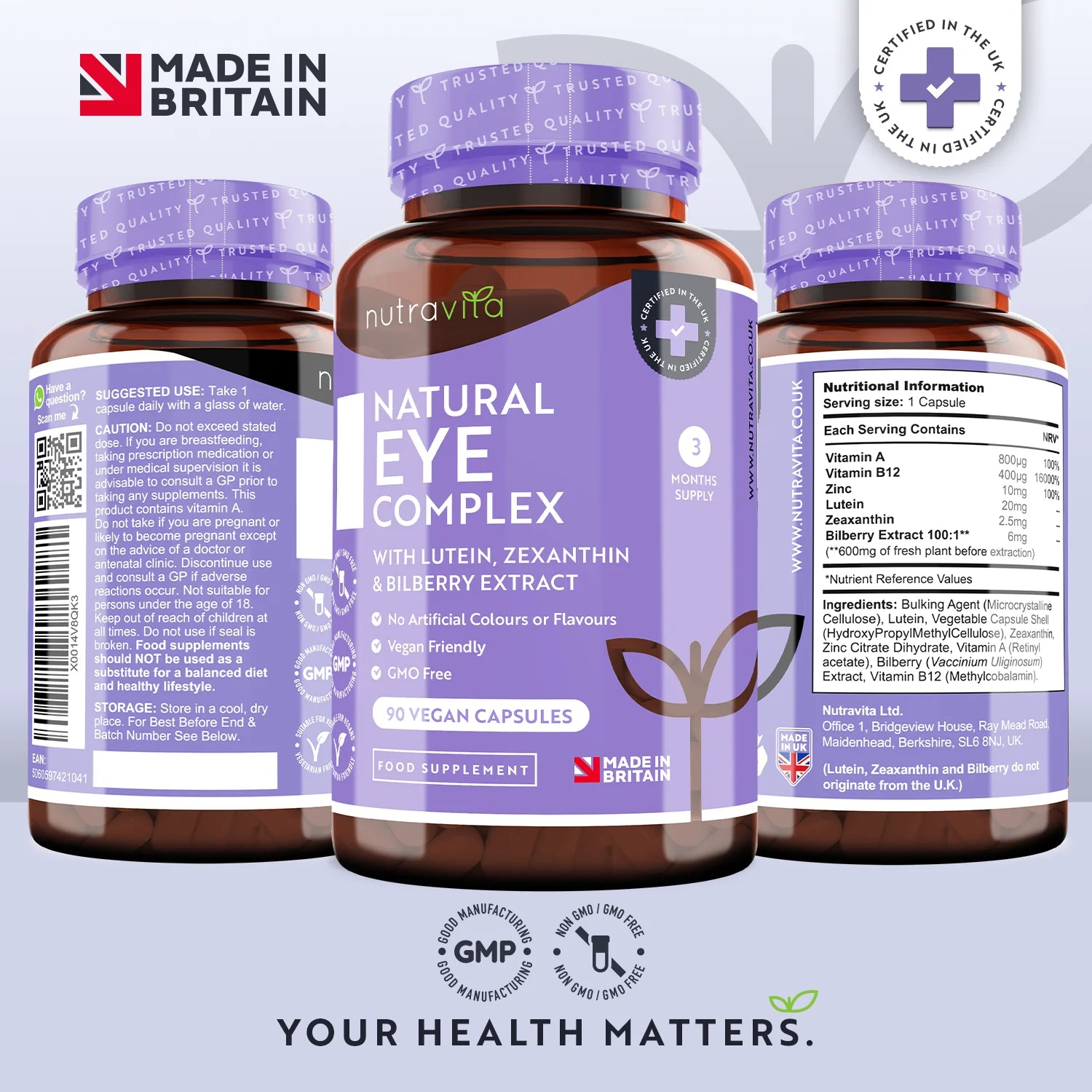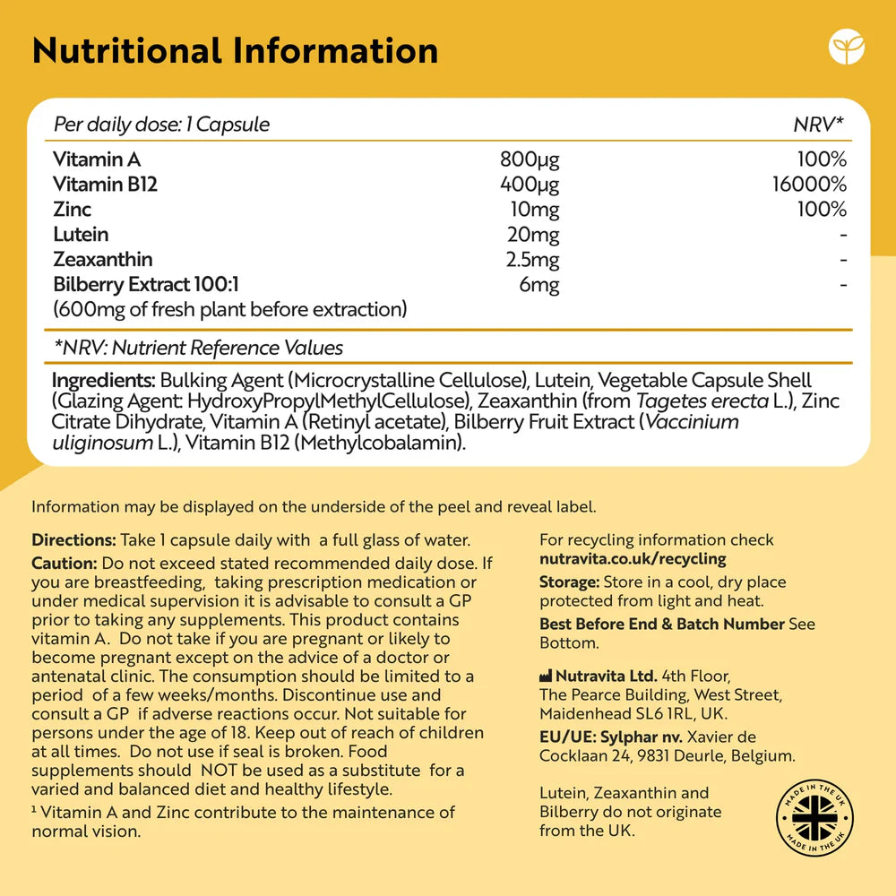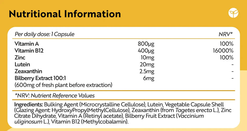 Съдържащи комбинация от мощни съставки, Natural Eye Complex е проектиран да поддържа вашето зрение и общо здраве. Витамин А, Цинк и Лутеин са известни с техните способности да укрепват очите и да подобряват зрителната функция. Лутеин и зеаксантин, например, играят важна роля в защитата на ретината и повишават устойчивостта на очите към ултравиолетовата светлина.