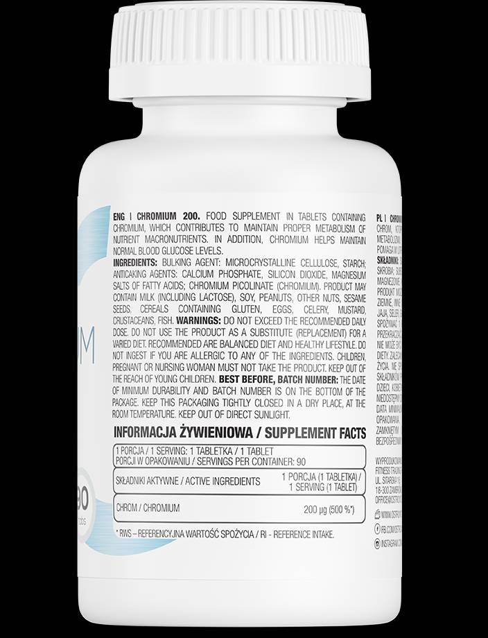 OstroVit Chromium 200 e патентован хром-комплекс, който допринася за нормалната концентрация на кръвната захар, холестерола и триглицеридите и за нормалното функциониране на метаболизма и производството на енергия.