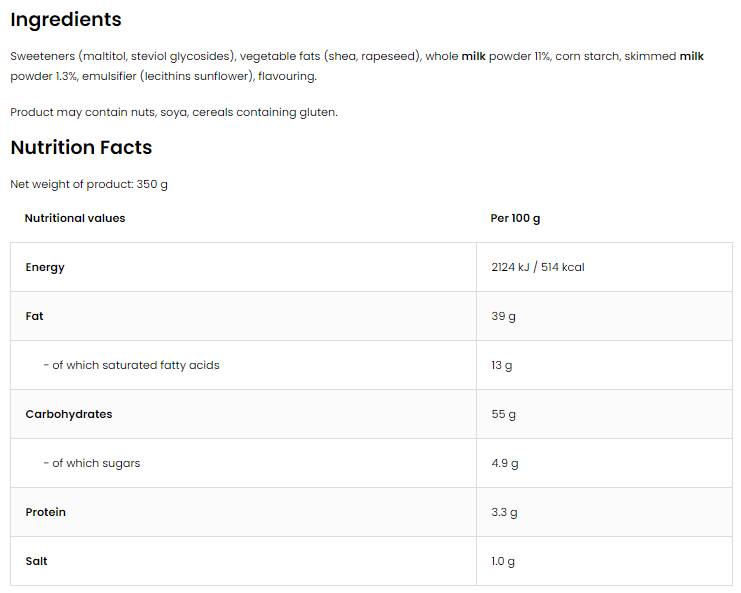 1. Съставът и информацията за алергени могат да се променят от производителя без предварително известие. За най-актуална и точна информация използвайте етикета/опаковката на продукта.
