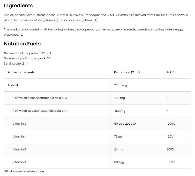 Научни изследвания доказват, че Омега 3 мастните киселини могат да намалят риска от сърдечно-съдови заболявания и да подобрят когнитивните функции. Витамин A е важен за здравето на зрението, докато витамин D играе ключова роля в поддържането на здрави кости и зъби. Витамини E и K също са важни за защитата на клетките и коагулацията на кръвта.