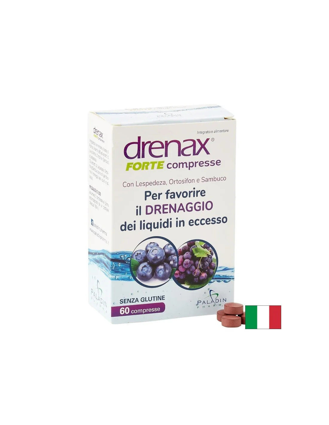 Drenax® Forte Paladin Pharma е натурална формула против задържане на течности, базирана на екстракти от леспедеза, черен бъз, гроздово семе, ортосифон и синя боровинка. Допълнително обогатеният комплекс с рутин и витамин B6 подпомага поддържането на здравословно телесно тегло и нормалния обем на течности в организма.