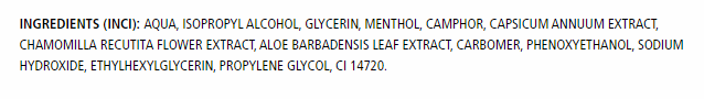 - С ментол, камфор и натурални екстракти (чили, лайка, алое вера)