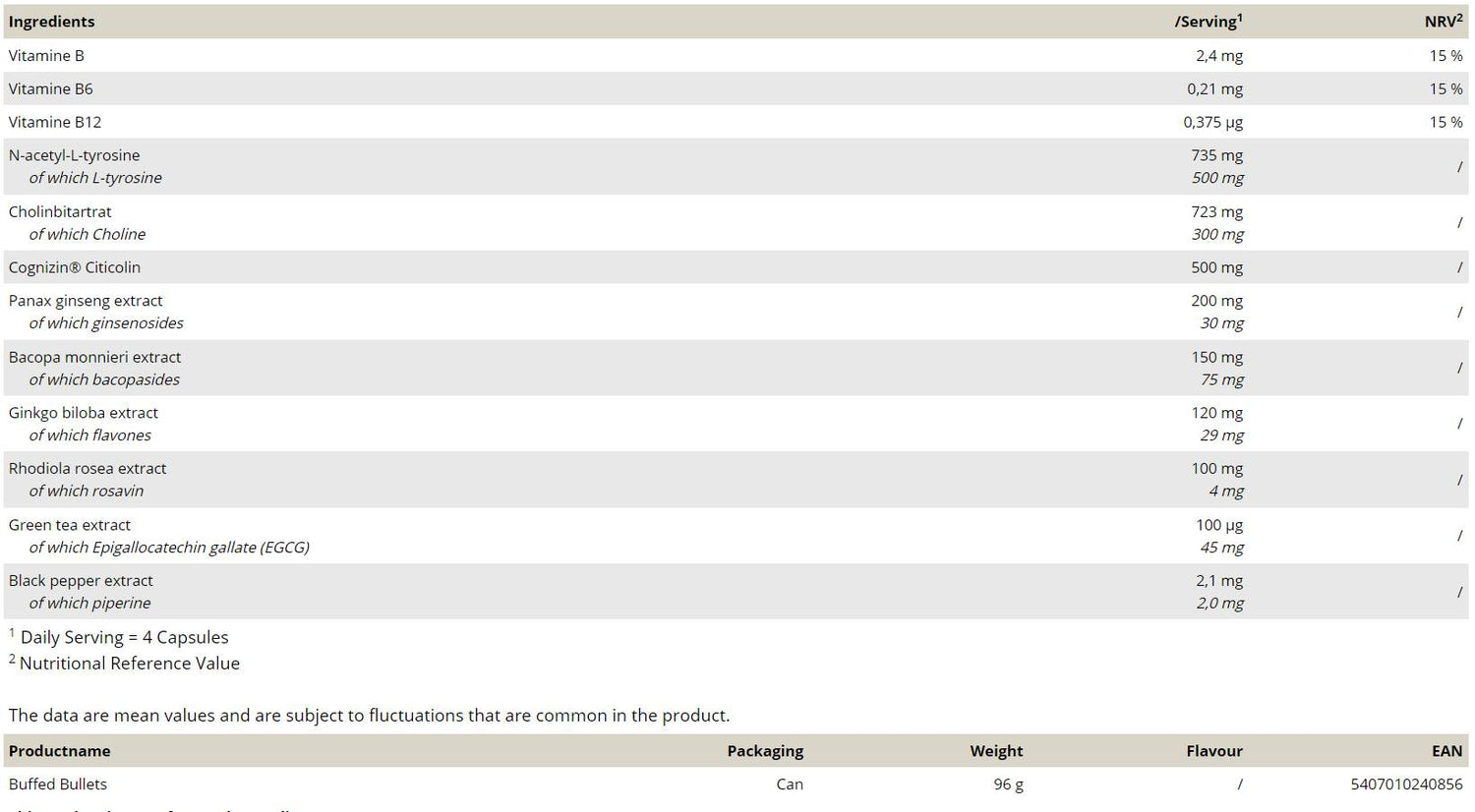 Buffed Bullets | with Adaptogens and Nootropics 120 капсули