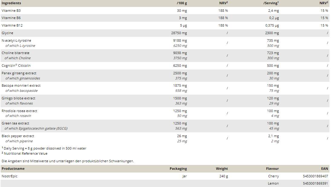 NootrEpic | with Choline, Bacopa & Rhodiola - 240 грама