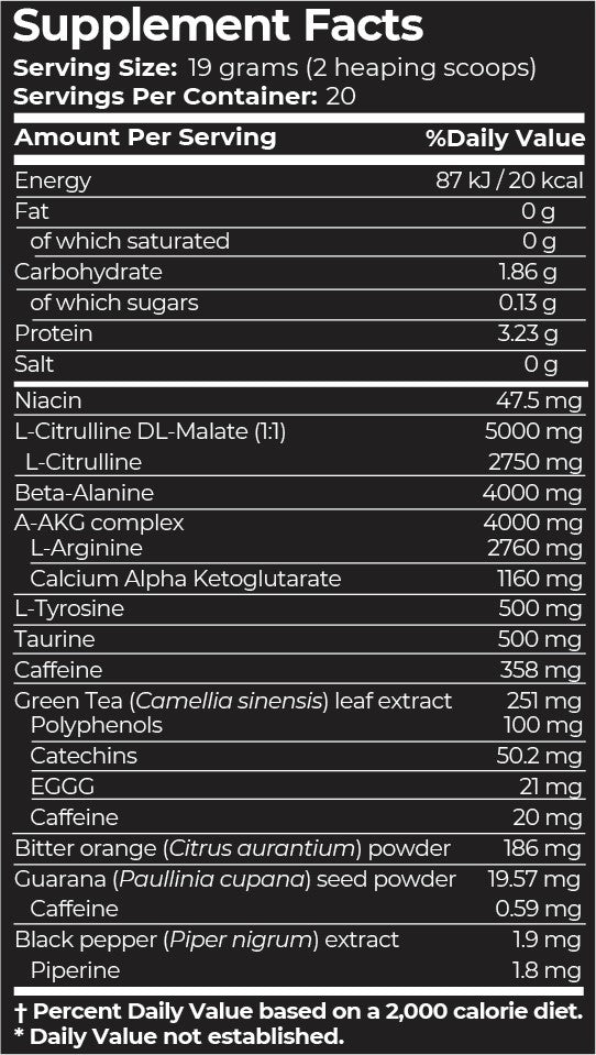 - Смесете една доза (20 g) с 300 ml вода и консумирайте 30 минути преди тренировка.