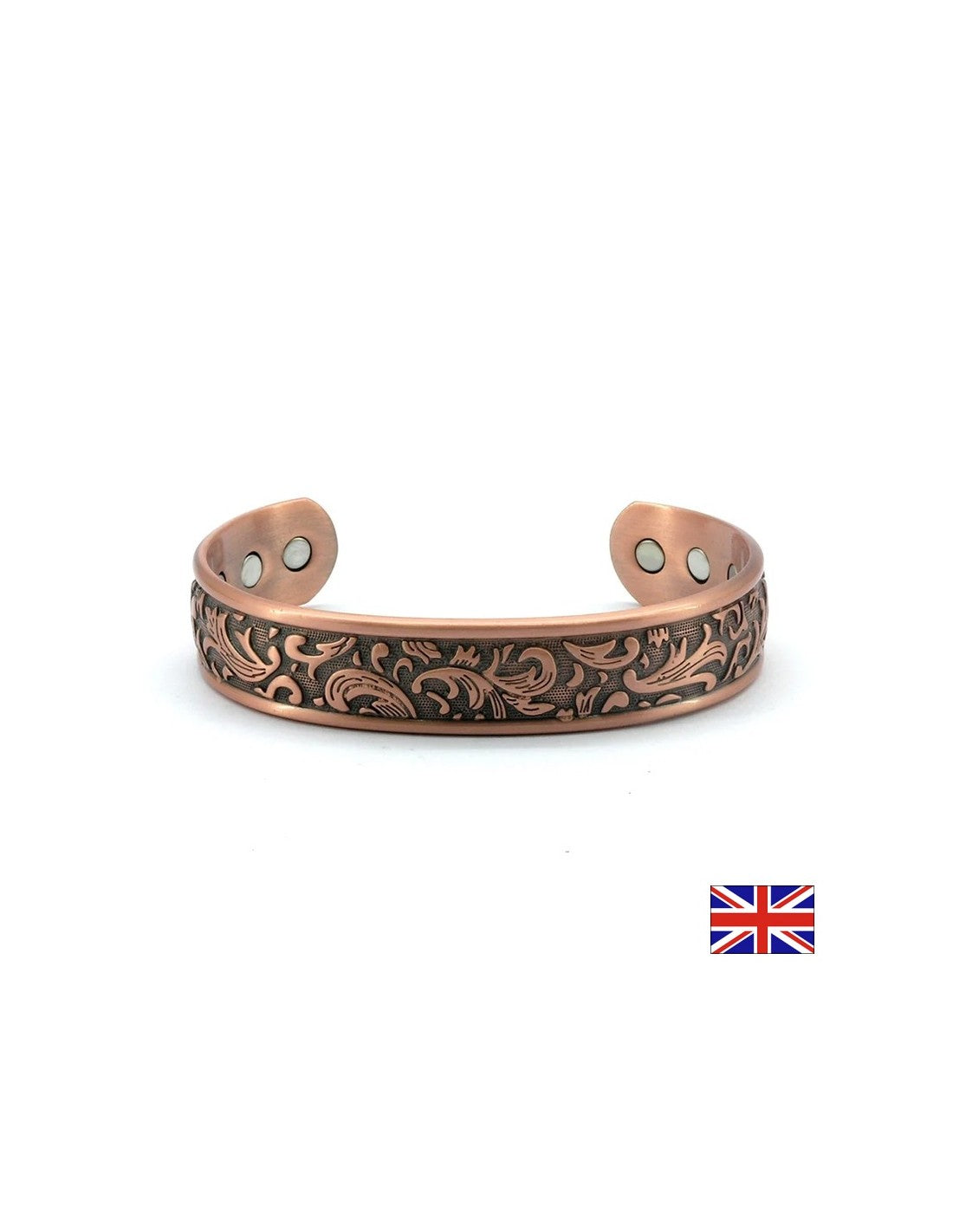 Елегантна гривна с фин релеф на листо и вградени неодимови магнити – вдъхновена от хармонията на природата и усещането за лекота. Неодимовите магнити са силни и устойчиви, използвани в уелнес продукти заради своето дълготрайно магнитно действие. Подходяща за всекидневна употреба с деликатно излъчване