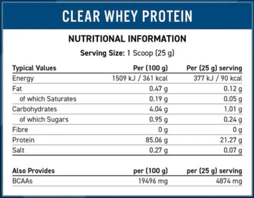 Със своя ултрахидролизиран суроватъчен протеин изолат, Clear Whey Protein се усвоява бързо и доставя 21 g протеин на порция, като съдържа около 1 g въглехидрати и около 90 калории. Захарта е под 0,25 g, което го прави чудесен избор за поддържане на чисти macros без излишни захари, дори когато целите са издръжливост и регенерация след тренировка.
