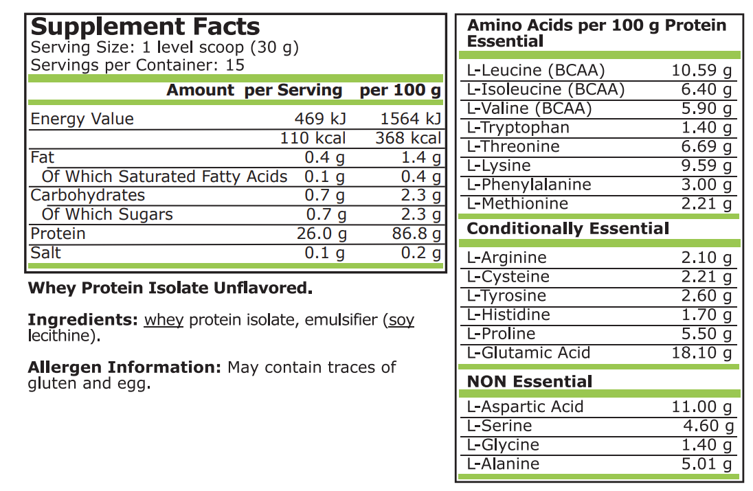 Whey Isolate съдържа неденатуриран протеин и високи количества биоактивни протеинови фракции. Счита се, че суроватъчният протеин е с най-високо качество тъй като има най-висока биологична стойност и се усвоява най-бързо от организма. Whey Isolate има най-високо съдържание на най-важните аминокиселини - тези с разклонена верига (BCAA) и на глутамин, които осигуряват положителен азотен баланс. Аминокиселинният профил на Whey Isolate е отличен и ви набавя необходимите аминокиселини в точната пропорция.