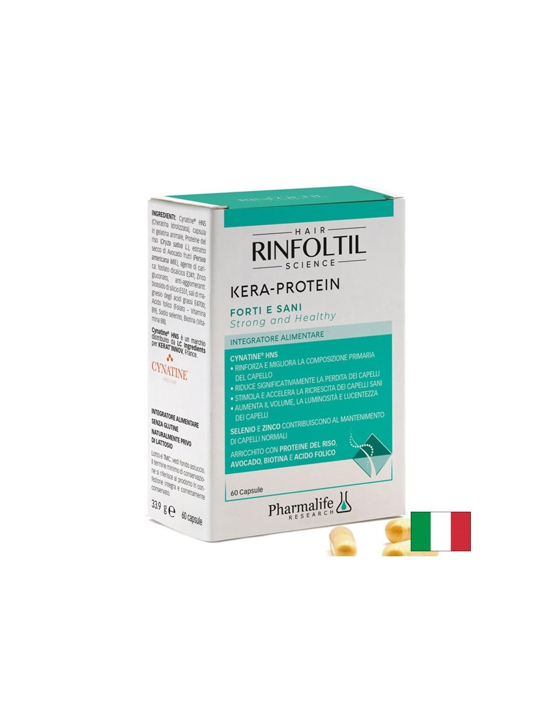 Комбинация от кератин, оризов протеин, авокадо и биотин RINFOLTIL за подхранване и укрепване на косата. Подпомага плътността, блясъка и устойчивостта на косъма