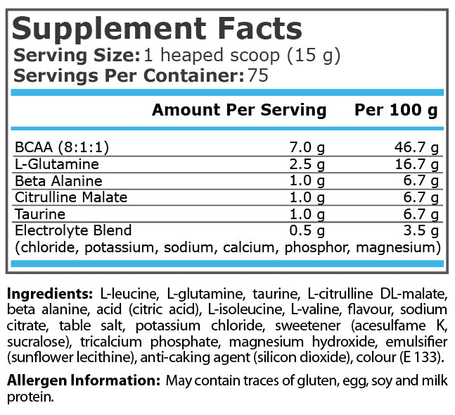 PURE NUTRITION AMINO BLAST има включена електролитна бленда, която обезпечава загубата на соли отделяни чрез потта, което води до спад в енергийното ниво.