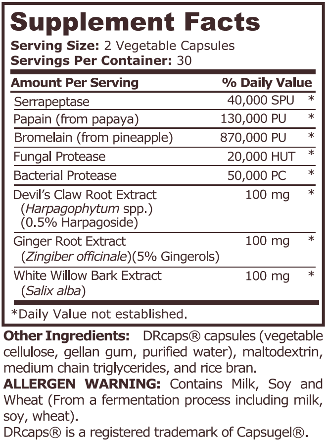 - Серапептаза и папаин: Ензими, който могат да помогнат при намаляването на възпалителните реакции в тялото.