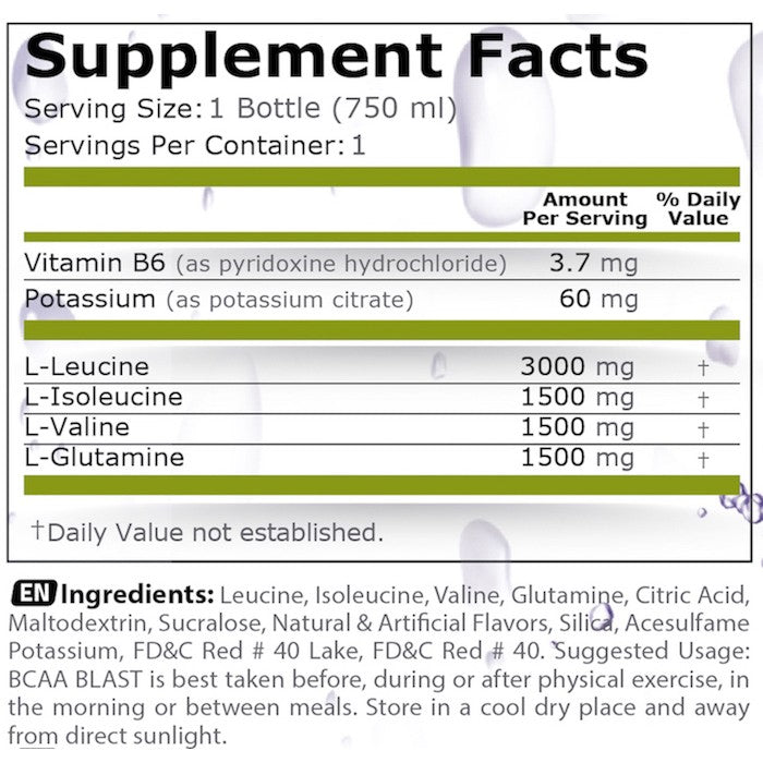 Верижно-разклонените аминокиселини са незаменими за тялото, защото то не може да ги произвежда самостоятелно, а трябва да се набавят от храна и добавки. BCAA Blast съдържа във формулата си и добавен глутамин, важна аминокиселина която действа синергистично с верижно-разклонените аминокиселини и подобрява възстановяването и растежа на мускулните влакна.