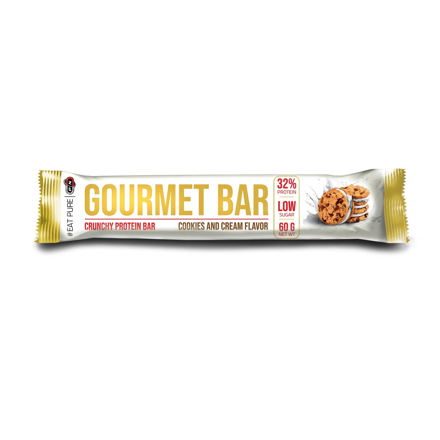 Gourmet Bar е високопротеинов бар, съдържащ всички амино киселини, необходими на тялото за протеиновия синтез в мускулите, отговорен за тяхното изграждане и възстановяване. И докато много протеинови барове само изглеждат здравословни, но всъщност съдържат много добавена захар, Gourmet Bar на Pure Nutrition не съдържа никаква добавена захар, а общото количество захар във всеки бар е под 3 грама. Той е създаден специално за хората, които имат нужда от бързо хапване по всяко време на деня и предоставя на тялото 20 грама висококачествени протеини в едва 230 калории.