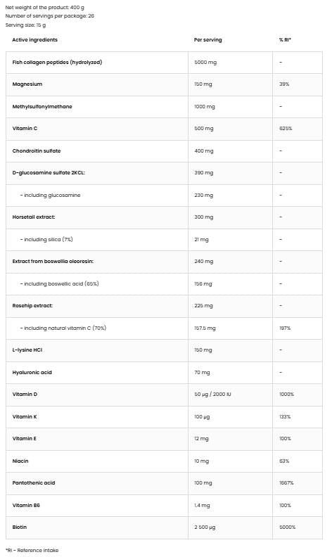 → Колагенът е един от основните изграждащи протеини в организма, естествен полимер и важен компонент на междуклетъчното вещество в животинските организми. Хидролизираните рибни колагенови пептиди в OstroVit наподобяват структурата на човешкия колаген, което прави съединението идеално усвоимо от организма.