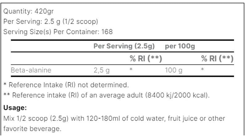 Beta-Alanine XS Powder - 420 грама