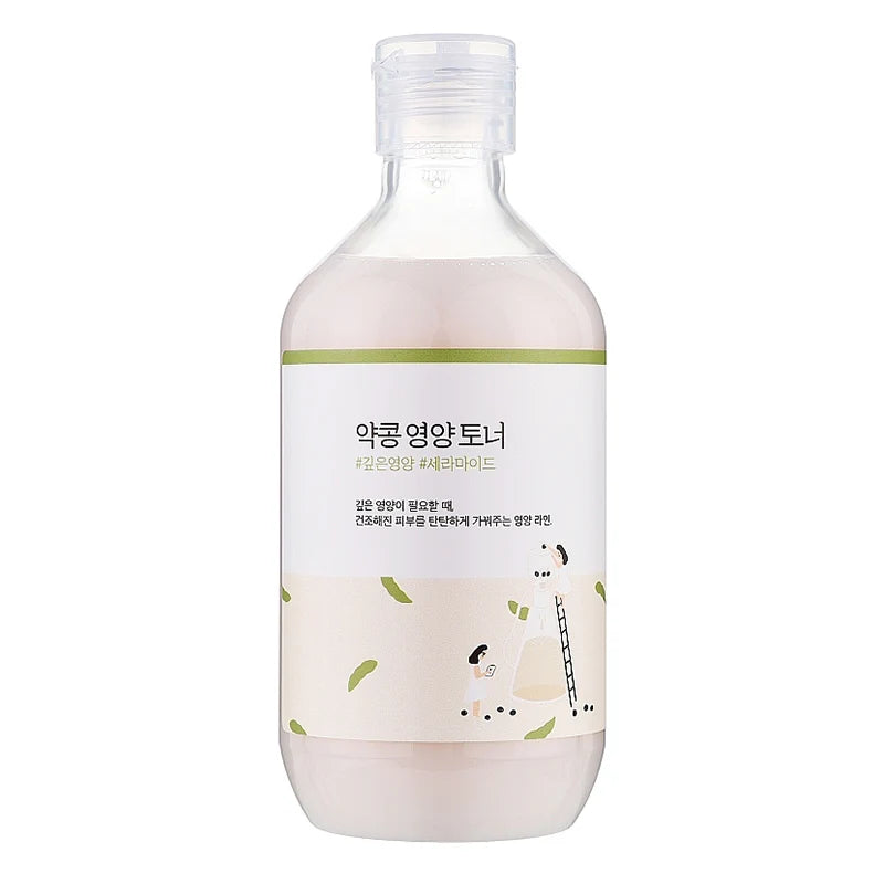 ROUND LAB Соево подхранващ тоник за лице обединява деликатна грижа с богата формула от полезни съставки. Екстрактът от черен соя (11 700 ppm) от остров Джеджу в комбинация с ceramides, аденозин, пантенол, екстракт от захарна тръстика, натриев хиалуронат и екстракт от какаово семе подпомага поддържането на хидратацията и укрепването на кожната бариера. Продуктът е подходящ за нормална, комбинирана и суха кожа и е 100% оригинален с доказан произход. Той е идеален избор за любители на качествени, добре подбрани и оригинални продукти за грижа за кожата, които търсят спокойна и стилна рутина без компромиси.