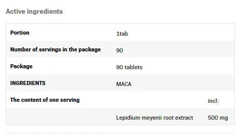Мака от SFD е първокласна хранителна добавка, получена от корена на Мака, която естествено повишава енергията, издръжливостта и общата жизненост. Екстрактът от Мака е мощен адаптоген, който подпомага енергийните нива, издръжливостта и сексуалното здраве. Богат е на витамини, минерали, аминокиселини и фитонутриенти, които допринасят за цялостното здраве и баланса на организма. Мака е известна със способността си да балансира хормоните и да подобрява настроението и умствения фокус, което я прави полезна както за физическото, така и за психическото здраве. Една доза е 1 таблетка, а опаковката съдържа 90 таблетки, осигурявайки месечна подкрепа за активен начин на живот. Подходящ за спортисти и активни хора и всеки, който търси естествен начин за повишаване на работоспособността и общата жизненост.