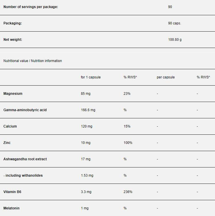 Sport Definition SLEEP AID е висококачествена формула, базирана на най-добрите активни съставки, в правилните дози, за да се осигури оптимален ефект. При включването на суплемента към вашия режим, вие не само ще подобрите качеството на съня си, но и ще повлияете и върху общото си здраве. Използвайки синергията между цинка, магнезия и витамин В6, Sleep Aid повишава собственото производство на тестостерон. Основната цел на суплемента, а именно дълбок и здрав сън, се постига с наличието на гама-аминомаслената киселина (GABA) и точното количество мелатонин.