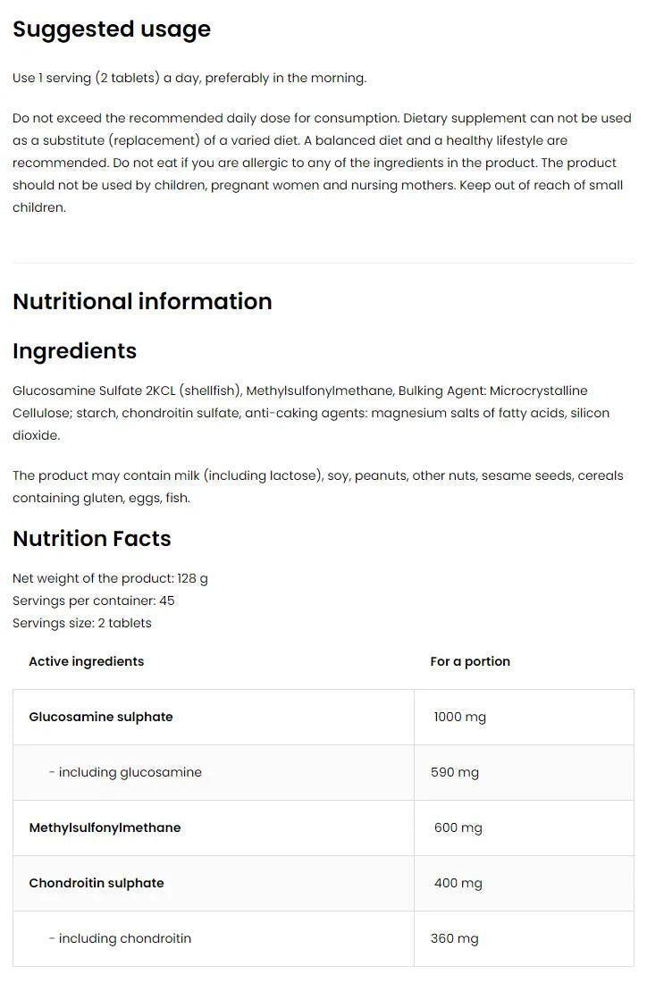Glucosamine + MSM + Chondroitin - 30 Таблетки
