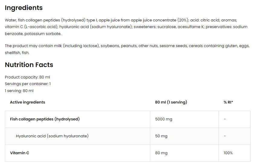 Малко повече информация за съставките в Ostrovit Marine Collagen Shot: