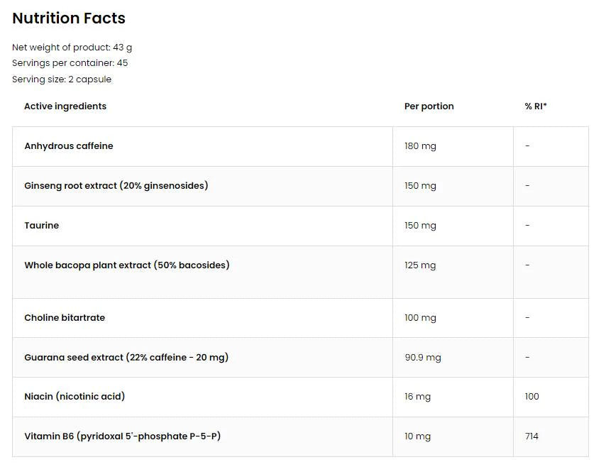 Важно е да се отбележи, че продуктът не е подходящ за лица с известна свръхчувствителност към кофеин или други стимулации. Препоръчва се консултация с лекар преди употреба, особено при наличие на хронични заболявания или ако приемате медикаменти.